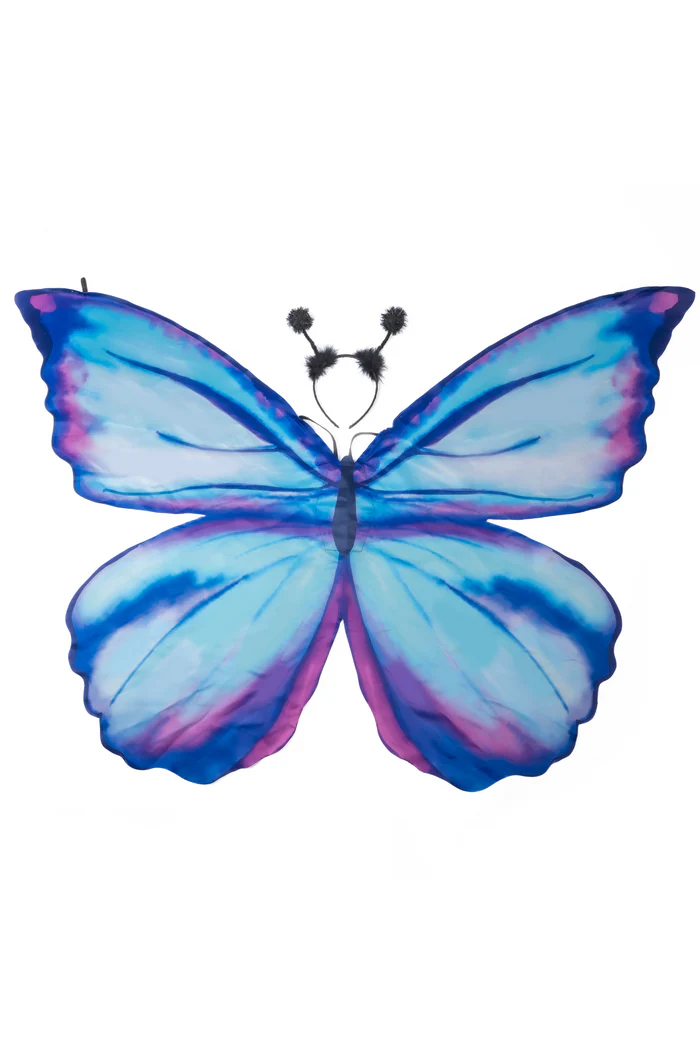 Avec leurs superbes nuances de bleu, de turquoise et de violet, ces ailes de papillon mythique évoquent la beauté délicate d’un papillon fantastique. Découpées au laser et peintes à la main, elles offrent un rendu à la fois artistique et enchanteur. Légères et confortables, elles accompagnent chaque mouvement de l’enfant qui peut virevolter, courir et danser comme une créature magique. Le coffret comprend également un serre-tête papillon assorti qui complète parfaitement cette tenue féerique et transforme instantanément le jeu en véritable aventure imaginaire.