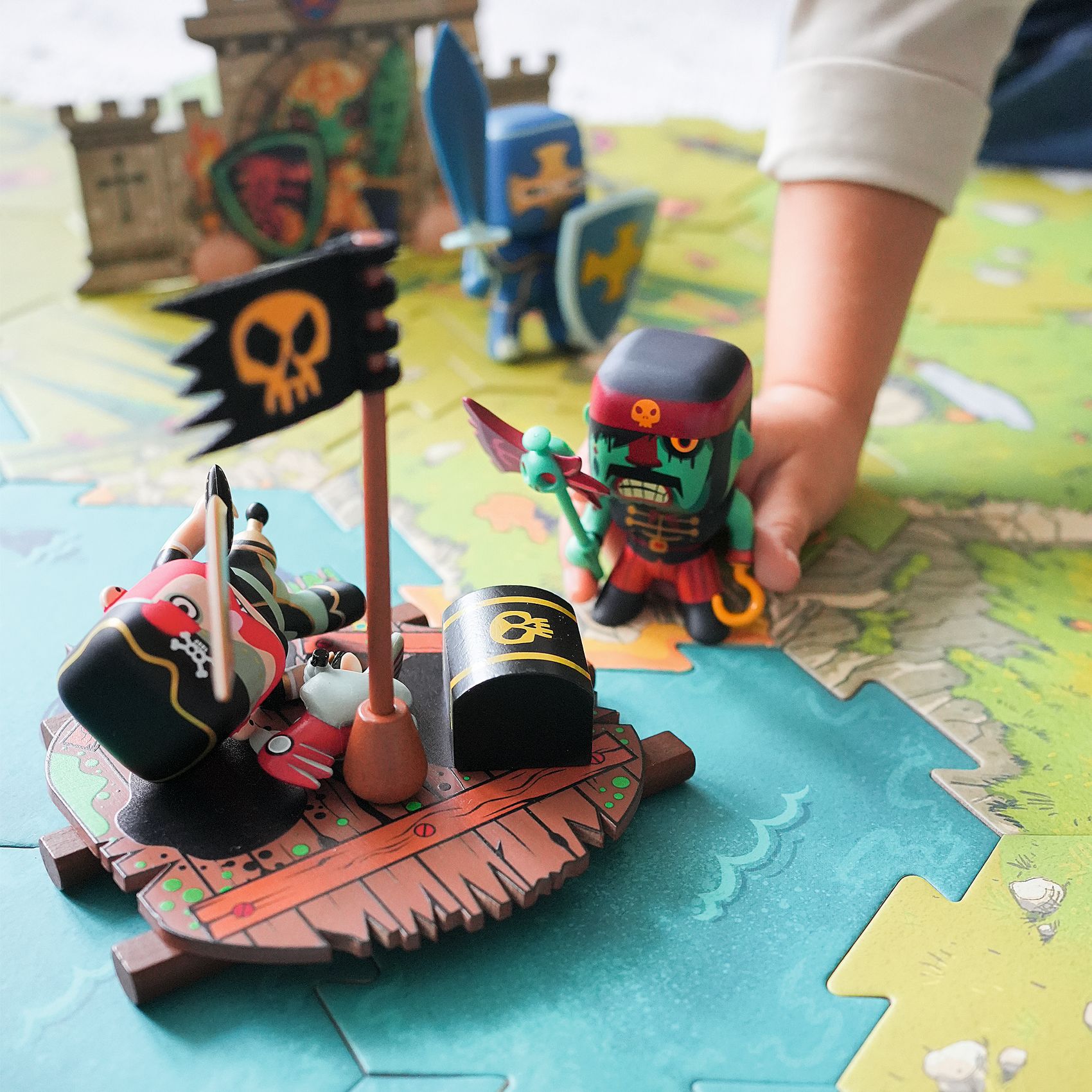 Attention, voici Kyle, le pirate au regard noir et au tempérament explosif ! Déchu de son trône de capitaine, il n’a qu’une idée en tête : reprendre sa place par la force. Armé de sa hache aux allures démoniaques et de son crochet doré, il est prêt à semer la terreur sur les océans imaginaires. Sa peau verte, son bandeau rouge et son expression féroce ne laissent aucun doute : il ne faut pas se frotter à lui ! Issu de l’univers créatif des Arty Toys, Kyle fait partie du clan des Piratous, ces pirates hauts en couleur qui s’invitent dans les histoires inventées par les enfants.