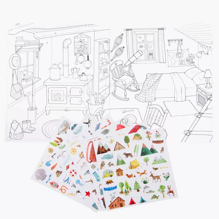 Les 195 stickers viennent enrichir chaque page : animaux, habitations, éléments de la nature et objets d’exploration prennent place au fil de l’imagination. Colorier développe la précision et le calme, coller stimule la créativité et le récit. Un cahier généreux et ludique, pensé pour rêver grand, explorer librement et raconter mille aventures.