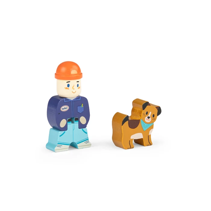 Avec le Camion de transport de voitures, l’enfant plonge dans l’univers joyeux des trajets et des livraisons. Ce magnifique camion en bois transporte à son bord quatre voitures aux couleurs vives, soigneusement installées sur sa remorque articulée. Le chauffeur, accompagné de son petit chien, veille au bon déroulement du voyage et invite à imaginer des histoires pleines de mouvement.