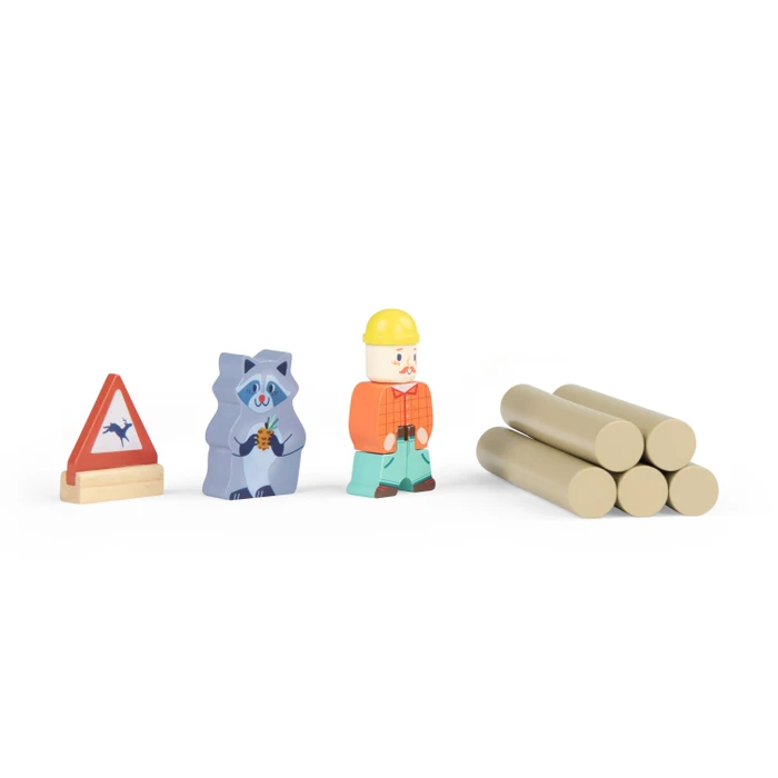 En manipulant le camion forestier, l’enfant développe sa motricité fine, sa coordination œil-main et son sens de l’organisation. Le jeu consiste à planifier le chargement, transporter les bûches et imaginer des trajets à travers la forêt. Ce type de jeu symbolique favorise également le langage et la narration, car chaque déplacement devient une histoire à raconter. Le thème de la forêt et du bois parle aux enfants et leur permet de recréer des scènes inspirées du quotidien ou totalement imaginaires.