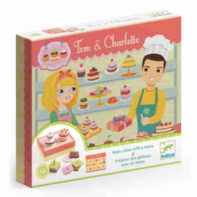 Bienvenue à la pâtisserie de Charlotte et Tom ! Cette jolie boîte en bois contient de quoi réaliser de délicieux petits gâteaux.