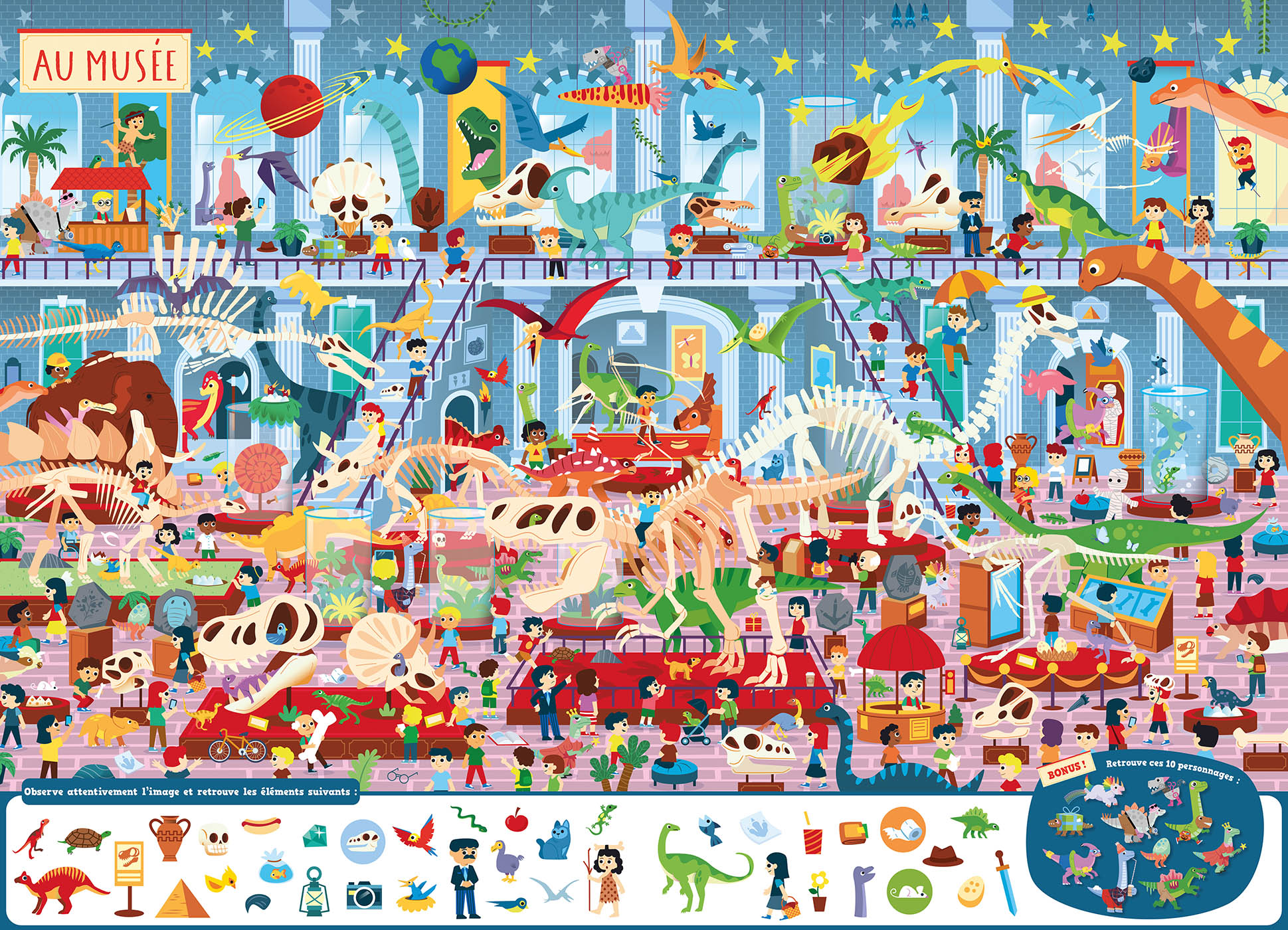 Avec ce cherche et trouve au format spectaculaire, les enfants explorent l’ère des dinosaures à travers des univers riches et foisonnants. Chaque double-page dévoile une scène détaillée où les dinosaures apparaissent dans des situations étonnantes : dans la mer, dans le ciel, dans le froid, au musée ou même en croisière. Les illustrations regorgent de personnages, d’objets insolites et de petites histoires q