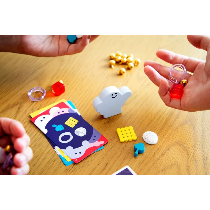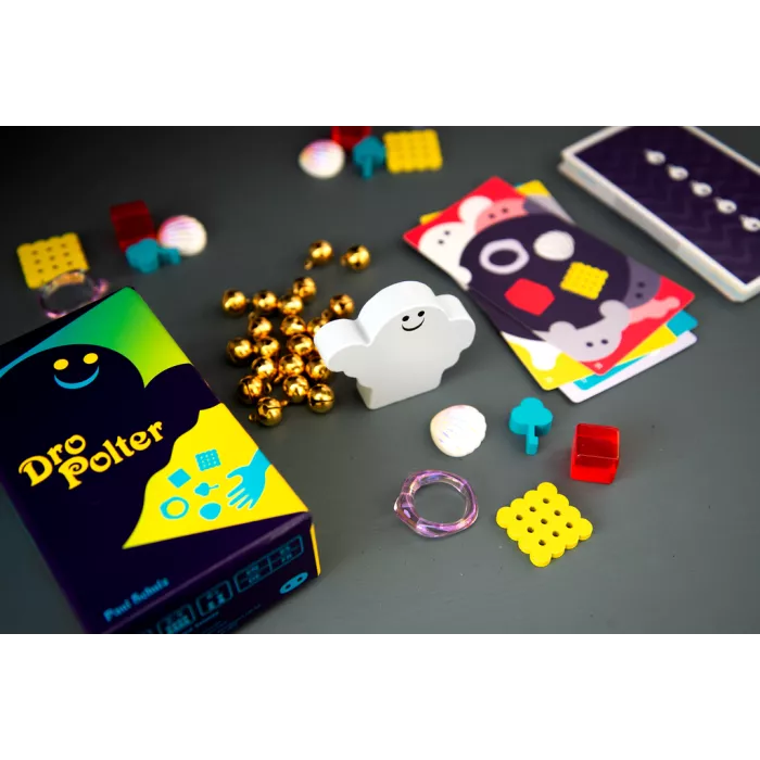 Au cœur de la nuit, un drôle de vacarme résonne : boum, cliquetis, tintements… Des fantômes joueurs envahissent la chambre ! Pour s’en sortir, il faudra lâcher les bons porte-bonheurs au bon moment… et tout ça avec une seule main. Plus simple à dire qu’à faire : vos doigts se tordent, vos paumes s’agitent, et à chaque manche de nouvelles petites cloches viennent compliquer la tâche. Dro Polter est un jeu de dextérité complètement déjanté, où rires, tension et maladresses garantissent une ambiance électrique autour de la table. Serez-vous assez rapide et précis pour déposer les bons objets avant tout le monde ?