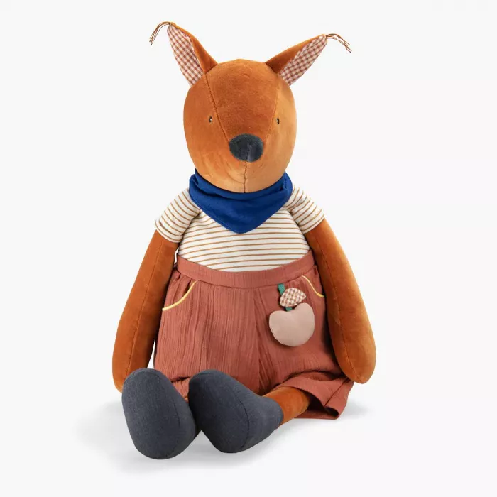 Dans la clairière des bois, un drôle d’écureuil géant a pris place. Avec sa fourrure douce aux couleurs d’automne, ses grandes oreilles attentives et sa poche remplie de surprises, il invite les enfants à plonger dans un monde de découvertes. Entre ses pattes se cachent des hochets qui tintent joyeusement, dans sa pomme préférée se glisse un petit pouët malicieux, et ses vêtements aux textures variées éveillent les doigts curieux. Sa grande taille le rend parfait pour de tendres câlins, mais aussi pour accompagner bébé dans ses premiers jeux sensoriels. Un compagnon rassurant, plein de douceur et de malice, prêt à partager câlins et explorations.