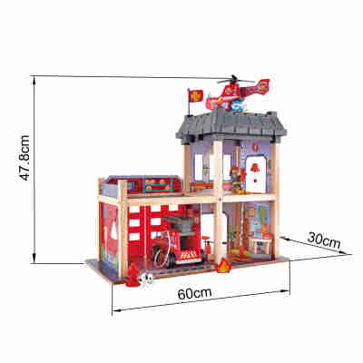 | Contenu | 1 bâtiment de gare, 1 panneau de base en bois, 1 tableau de commande, 1 hache, 1 extincteur, 1 voiture de pompiers, 1 hélicoptère, 1 pompier, 1 flamme, 1 chien, 1 bouche d'incendie, 1 drapeau, 1 radar. |