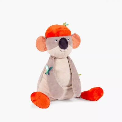 Koco, le grand koala d’activités, invite les petits à une exploration sensorielle au cœur de la jungle. Tout doux et généreux, il cache sous sa fourrure mille surprises : des hochets dans ses pattes, du papier bruissant dans ses grandes oreilles, un papillon scintillant sur le bras et un ventre plein de petits sons malicieux, scritch, pouët, cloc ! Son sourire tendre et ses teintes chaudes en font un compagnon de jeu aussi apaisant qu’éveillant, parfait pour accompagner les premiers mois de bébé.