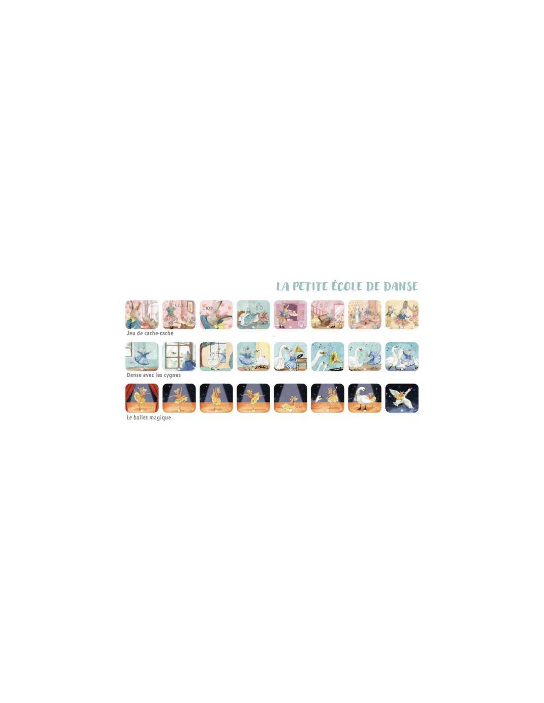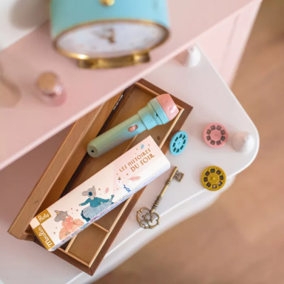 Quand la lumière s’éteint, la scène s’illumine… La petite école de danse ouvre ses rideaux pour un spectacle plein de poésie. Avec cette lampe à histoires, l’enfant projette trois récits tendres et gracieux : le jeu de cache-cache, la danse avec les cygnes et le ballet magique. Les souris danseuses virevoltent, les cygnes s’élancent, et le rideau s’ouvre sur un monde où l’imagination devient chorégraphie. Chaque disque, comme une boîte à musique visuelle, offre un nouveau tableau à contempler et à inventer, seul ou avec ses parents.