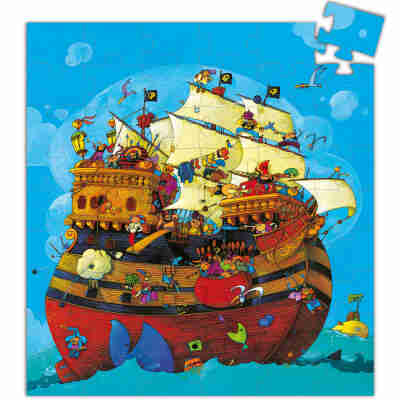 Embarquons sur le bateau de Barberousse, et vivons la vie des pirates. Un puzzle coloré de 54 pièces dans une boîte élégante en forme de bateau.