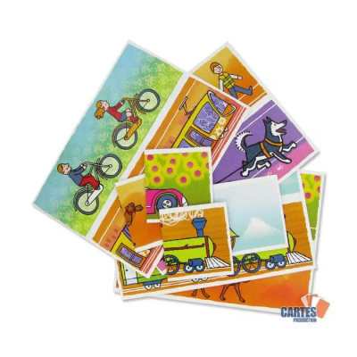 Chaque joueur choisit une planche illustrant deux véhicules, découpés en trois parties (avant, milieu, arrière). Les 24 cartes sont placées faces cachées sur la table… À tour de rôle, chacun retourne une carte : si elle correspond à sa planche, il la place au bon endroit et rejoue. Sinon, il la passe à l’adversaire qui en a besoin. Le suspense monte, les planches se complètent peu à peu, et le premier à avoir reconstitué ses deux véhicules remporte la partie !