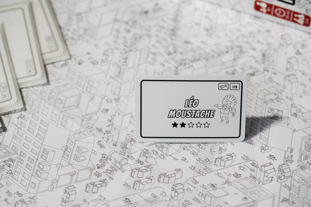 La mécanique de Micro Macro Crime City repose sur l’observation minutieuse, la coopération et la logique. Les joueurs choisissent une enquête, lisent une carte de départ, puis doivent répondre à différentes questions en identifiant sur le plan les scènes exactes correspondant aux événements racontés. Il faut suivre les déplacements des personnages, comprendre la chronologie, repérer des objets ou des lieux, puis valider ses hypothèses au fil des cartes. Cette structure en missions successives rend les enquêtes fluides et très engageantes. Le jeu stimule fortement la concentration, la mémoire visuelle, la discussion collective et le raisonnement, tout en restant très accessible dans ses règles.