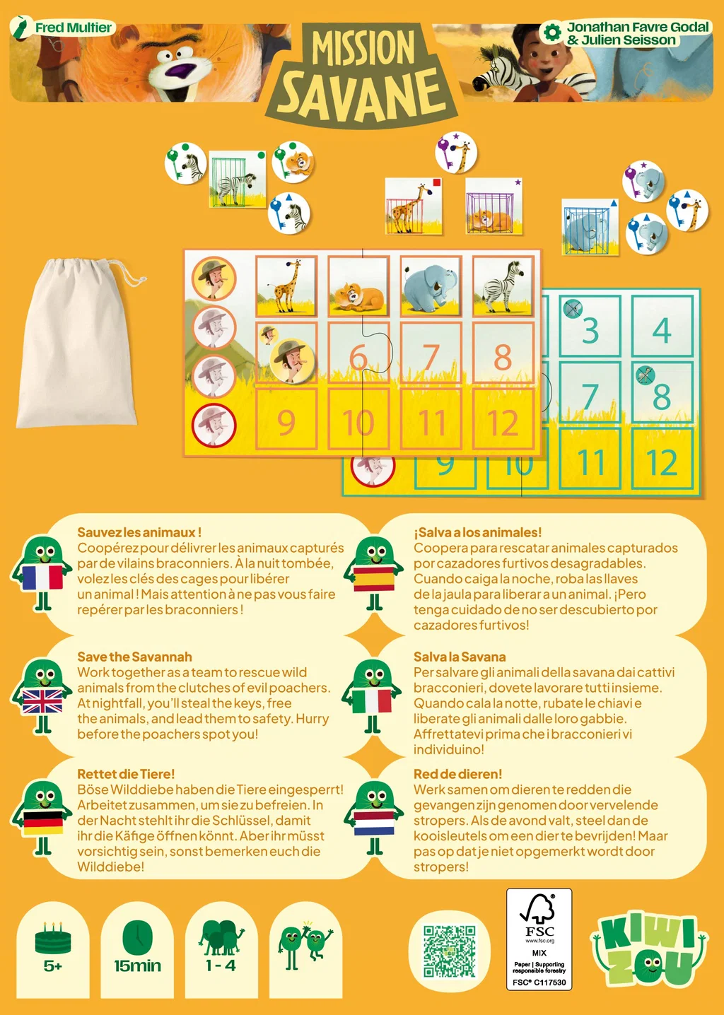 Les illustrations chaleureuses et pleines de vie plongent les joueurs dans un univers rassurant et immersif. Avec ses deux niveaux de jeu et sa possibilité de jouer seul, Mission Savane accompagne les enfants dans leurs premières expériences ludiques… où l’on apprend surtout qu’ensemble, on va toujours plus loin.