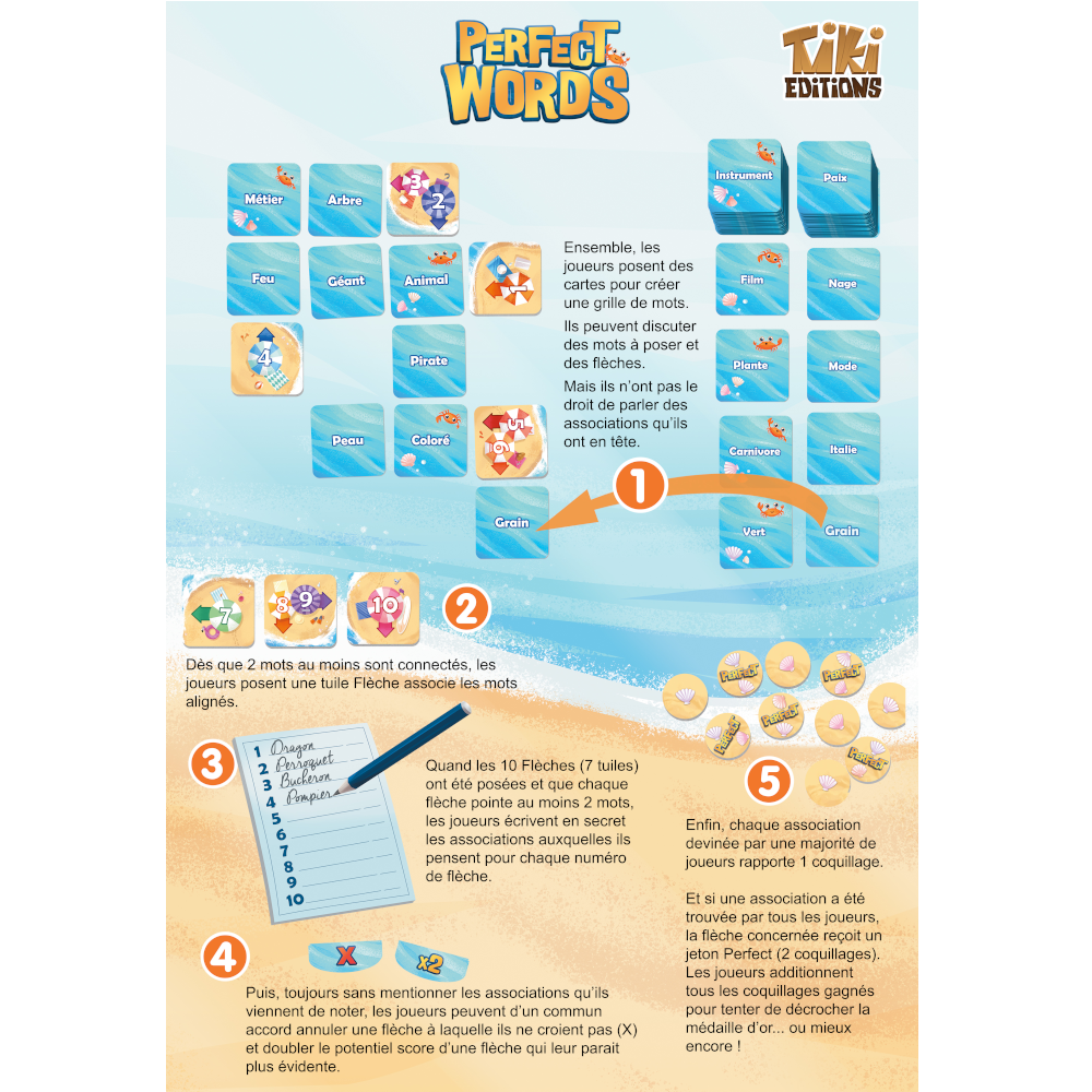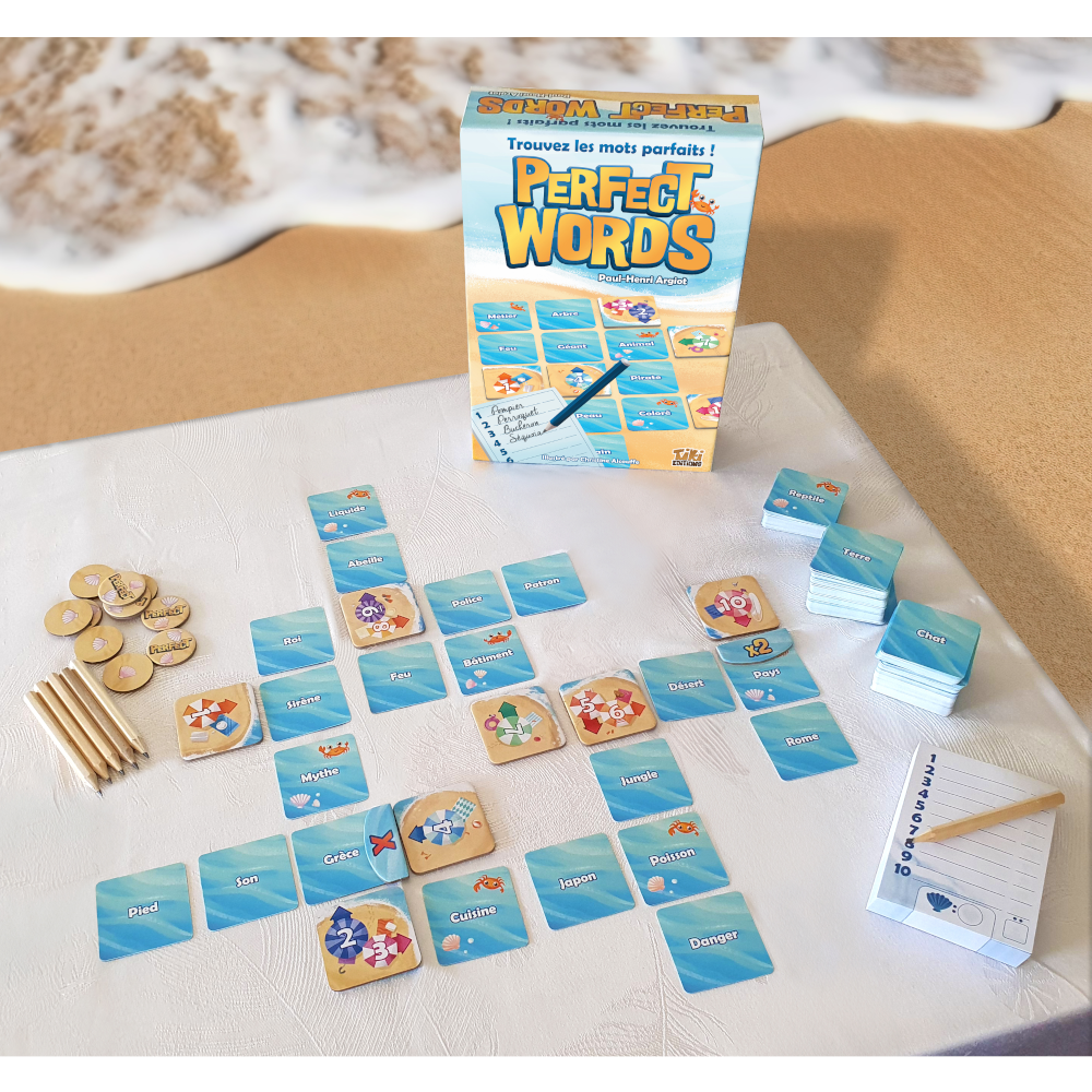 Plongez dans un jeu de mots coopératif plein d’évidence… ou pas ! Dans Perfect Words, les joueurs créent ensemble une grille de mots fléchés et tentent d’associer les termes les plus parlants pour tous. Mais attention : chacun doit ensuite deviner en secret les associations prévues par les autres. Rires, surprises et débats garantis quand les réponses se révèlent !