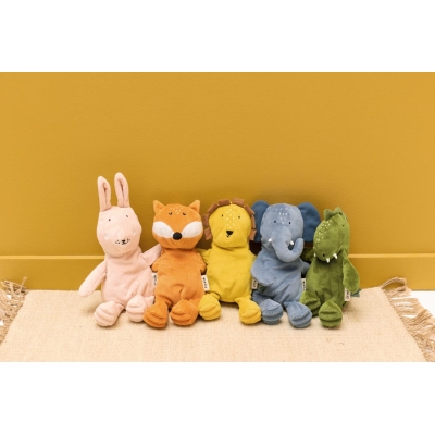 Avec sa crinière flamboyante et son air malicieux, Mr Lion se transforme en un tendre compagnon prêt à rugir de douceur. Petit mais plein de charme, il se glisse facilement dans les bras des enfants pour des câlins à toute heure. Le jour, il devient partenaire de jeux et de découvertes, la nuit, il veille silencieusement sur les rêves. Son coton biologique certifié GOTS caresse la peau avec délicatesse, tandis que son rembourrage recyclé lui donne un moelleux irrésistible. Souple et expressif, il invite à inventer mille histoires et apporte une note solaire et poétique dans la chambre.