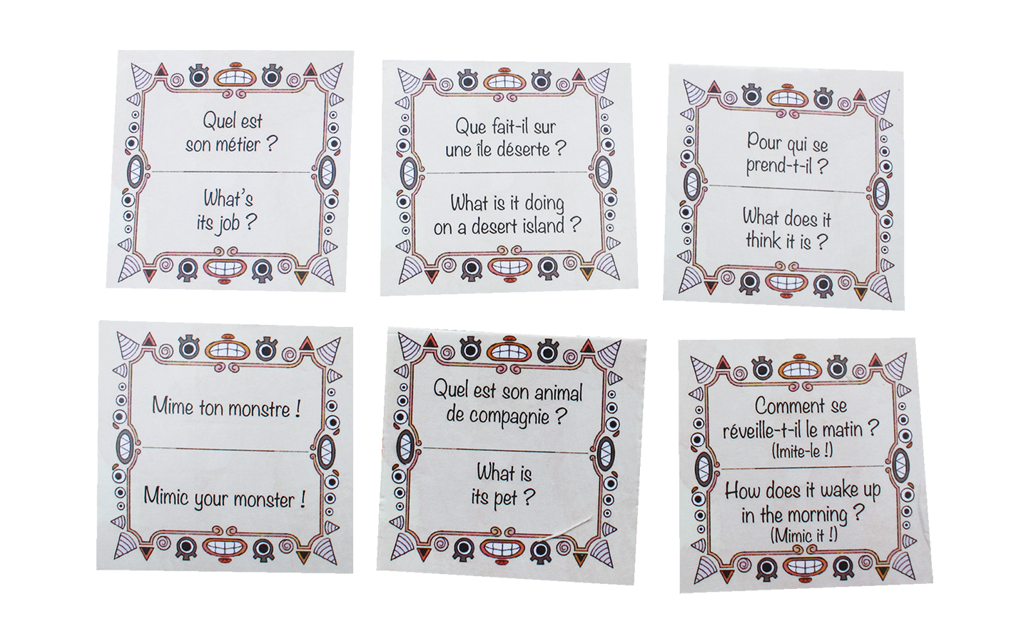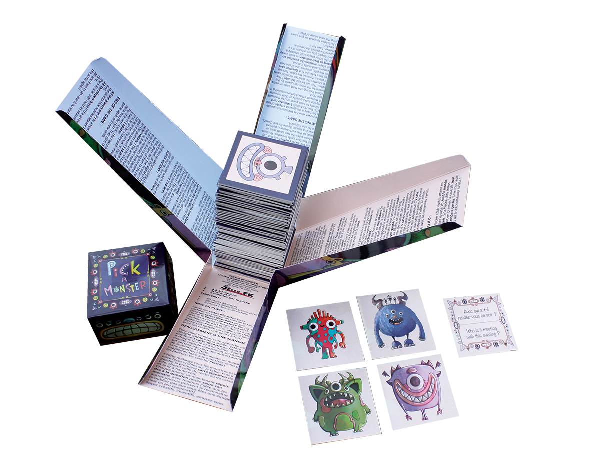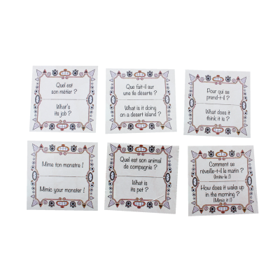 | Contenu | 90 cartes Monstres, 30 cartes Questions (recto verso), 6 cartes Chemin de victoire, Règle français-anglais. |