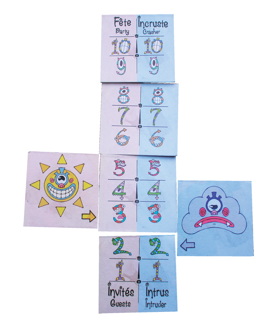 Chaque joueur choisit un monstre et devra répondre aux questions décalées qui le définissent : quel est son cri, où habite-t-il, quel est son super-pouvoir, comment se réveille-t-il le matin… Chacun incarne son monstre à travers mimes, réponses ou imitations. Puis vient le moment de retirer les créatures de la table : si c’est bien l’intrus qui reste à la fin, l’équipe remporte la manche. Sinon, l’invité indésirable avance vers la victoire.