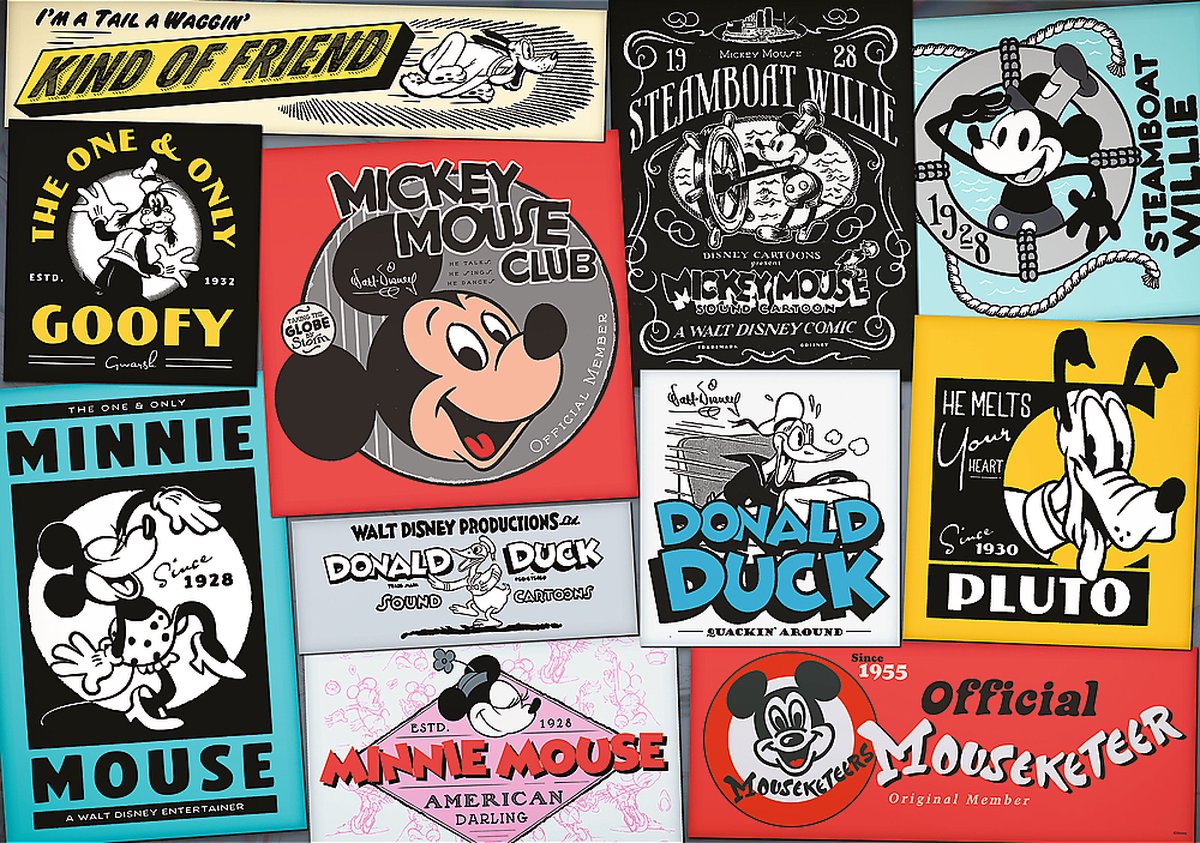 Mickey, Minnie, Dingo & Co reviennent en affiches vintage dans un puzzle 1000 pièces à savourer comme un bon vieux dessin animé. Entre typographies d’époque et charme graphique des années 30 à 50. Un moment de jeu empreint de nostalgie, parfait pour revivre l’enfance et partager un doux moment en famille, tout en reconstituant cette joyeuse mosaïque d’histoire animée.