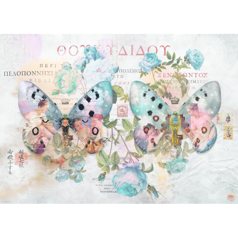 Deux ailes de papillon aux allures de fresque, des visages classiques, des fleurs bleues et des fragments d’écriture ancienne… Ce puzzle de 1000 pièces est une invitation à l’émerveillement. L’artiste André Sanchez mêle collages, textures et symboles pour créer une image à la fois onirique et délicate. Chaque pièce dévoile un univers de détails, entre peinture romantique, botanique et constellations célestes. Une œuvre fascinante à assembler, qui transforme peu à peu le jeu en contemplation.