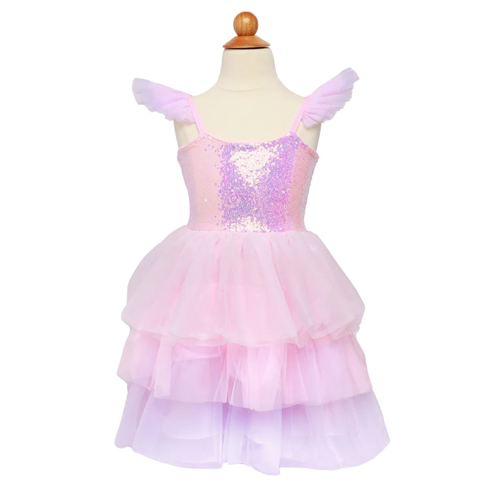 La robe rose à sequins Great Pretenders référence 31225 est une robe de déguisement enfant conçue pour briller lors des fêtes, anniversaires et jeux d’imitation. Son corsage recouvert de sequins irisés reflète la lumière avec douceur. La jupe est composée de plusieurs couches de tulle rose et lilas, créant un volume élégant et aérien.