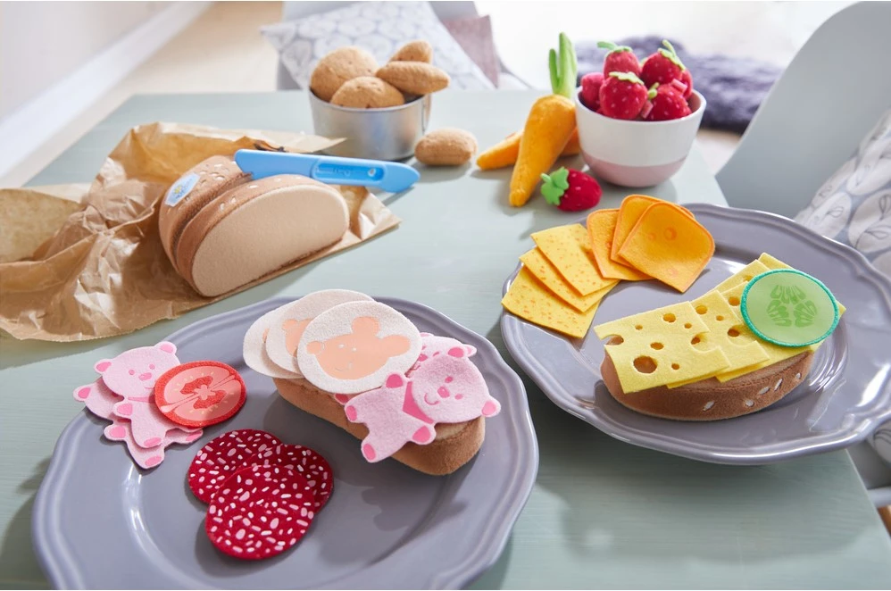 À table ! Avec ce set de charcuterie Haba, les petits chefs en herbe pourront garnir leurs sandwichs et inventer des repas plus vrais que nature. Saucisson, jambon en forme d’ourson, salami ou encore rondelles de tomates : tout est réuni pour des jeux de rôle savoureux dans la cuisine ou la dînette.