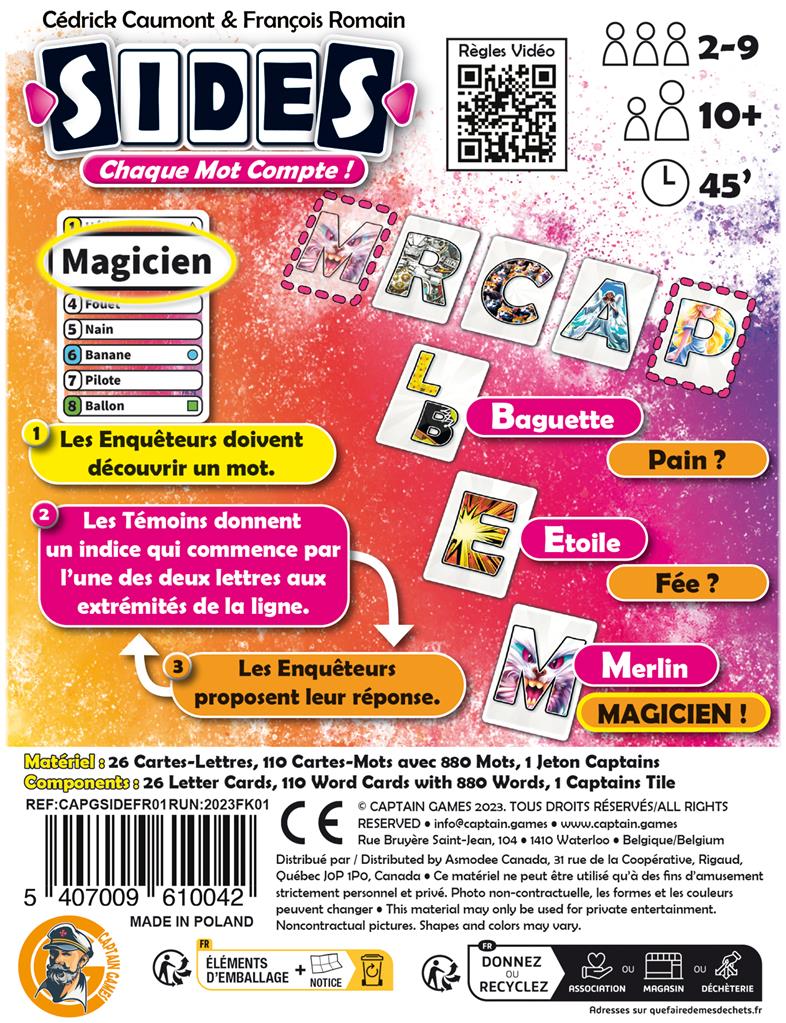 C’est un véritable défi cérébral qui se joue en coopération, dans une ambiance conviviale et souvent hilarante ! Grâce à ses 880 mots variés, Sides devient vite incontournable pour les amateurs de jeux de lettres et de réflexion à partager en famille ou entre amis.
