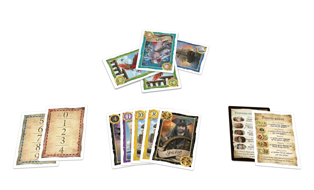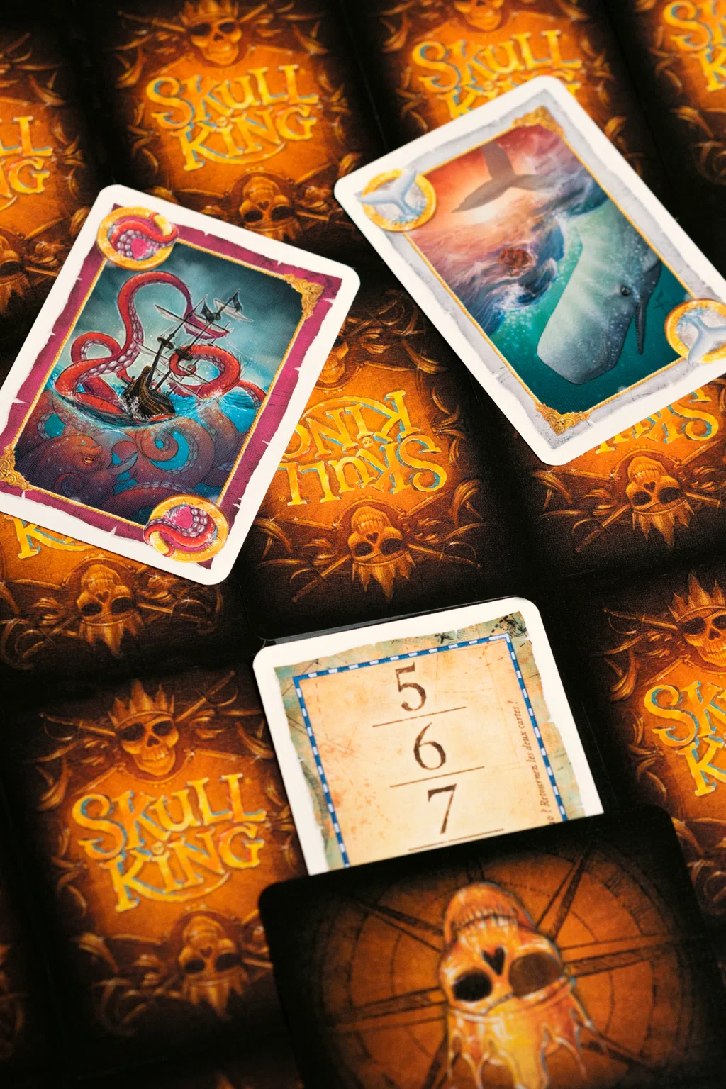 Dans Skull King, chaque manche est une prise de risque délicieuse. Les cartes en main, vous devez annoncer précisément le nombre de plis que vous pensez remporter… ni plus, ni moins. Mais attention, la mer est capricieuse : pirates, sirènes et créatures marines viennent chambouler les règles et retourner les situations en un clin d’œil. Manche après manche, la tension monte à mesure que le nombre de cartes augmente, rendant vos choix de plus en plus cruciaux.