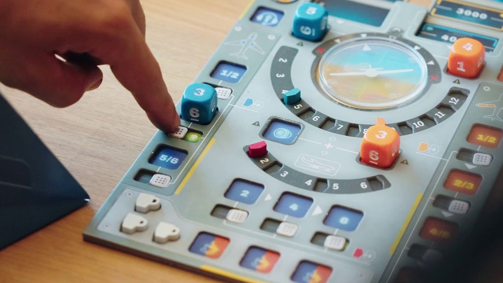 Le gameplay de Sky Team repose sur une communication limitée et une coopération précise. Les joueurs peuvent discuter de leur stratégie avant de lancer les dés, mais une fois lancés, ils doivent jouer en silence. Cette contrainte crée une tension unique et pousse à interpréter les actions de son partenaire. Chaque placement de dé devient une information et un choix stratégique. Le jeu se déroule en plusieurs manches correspondant à la descente de l’avion, et chaque erreur peut entraîner un crash, une sortie de piste ou une collision. Cette mécanique immersive simule avec finesse la complexité d’un atterrissage réel.