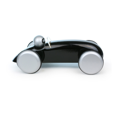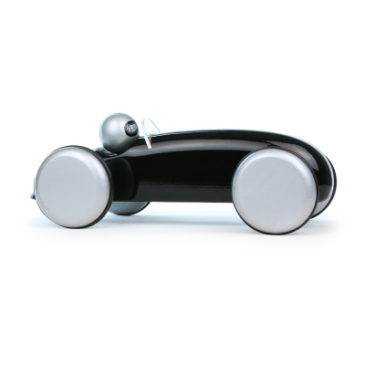 Élégante, la Speedster noire de Vilac file droit vers l’imaginaire des enfants. Avec son design rétro et ses lignes sportives, ce bolide en bois laqué invite à toutes les aventures : virages serrés, grandes courses ou simples balades cheveux au vent. Solide et durable, elle se transmet de génération en génération, pour le plus grand bonheur des petits pilotes et des collectionneurs. Fabriquée en France, dans le Jura, elle est le parfait équilibre entre jouet d’éveil et objet déco.