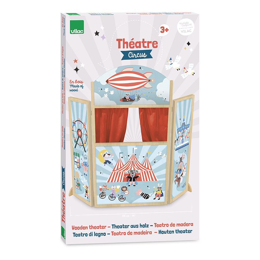 Rideau rouge, silence dans la salle… et que le spectacle commence ! Avec ce théâtre en bois joliment illustré par Michelle Carlslund, les enfants deviennent conteurs, metteurs en scène et artistes à la fois. Derrière le chapiteau coloré, marionnettes et personnages prennent vie, enchaînant numéros acrobatiques, histoires farfelues et scènes inventées. Chaque représentation est une aventure unique où les petits spectateurs retiennent leur souffle et applaudissent à tout rompre. Plus qu’un jouet, ce théâtre est un véritable décor qui invite à rêver, à imaginer et à partager. Il stimule l’expression orale, développe la créativité et transforme la chambre en piste aux étoiles.