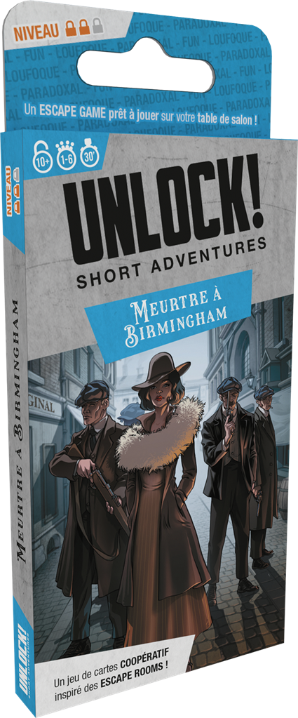 Plongez dans les années 20, dans un Birmingham brumeux où les trench-coats se croisent et les secrets s’épaississent. Dans Meurtre à Birmingham, l’une des aventures de la gamme Unlock! Short Adventures, vous êtes entraîné dans une affaire criminelle où chaque indice peut vous mener à la vérité… ou à une impasse.